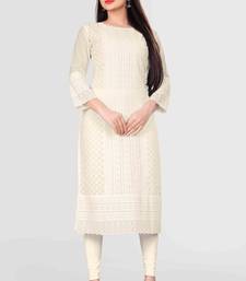 Wlosea fashion georgette chiffon chikan embroidery off white stitched only kurti