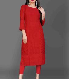 | Product Description | Wlosea Fashion Georgette Chiffon Chikan Embroidery Red Stitched Only Kurti |