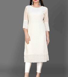 Wlosea fashion georgette chiffon chikankari embroidery off white stitched only kurti