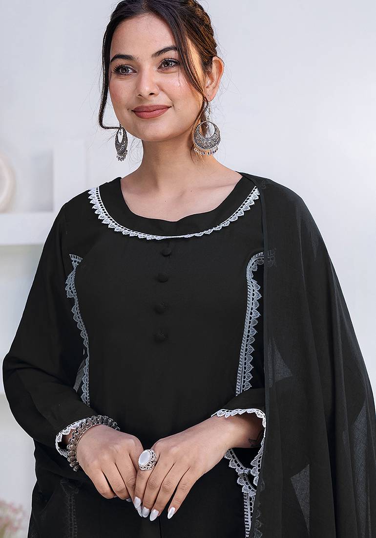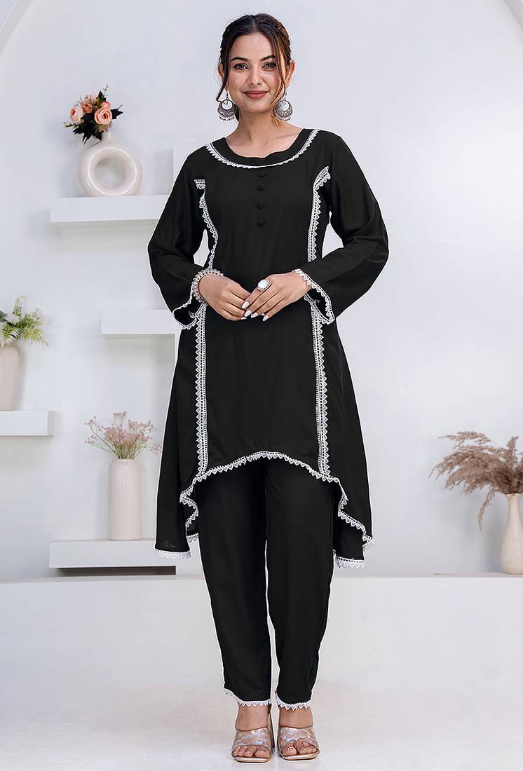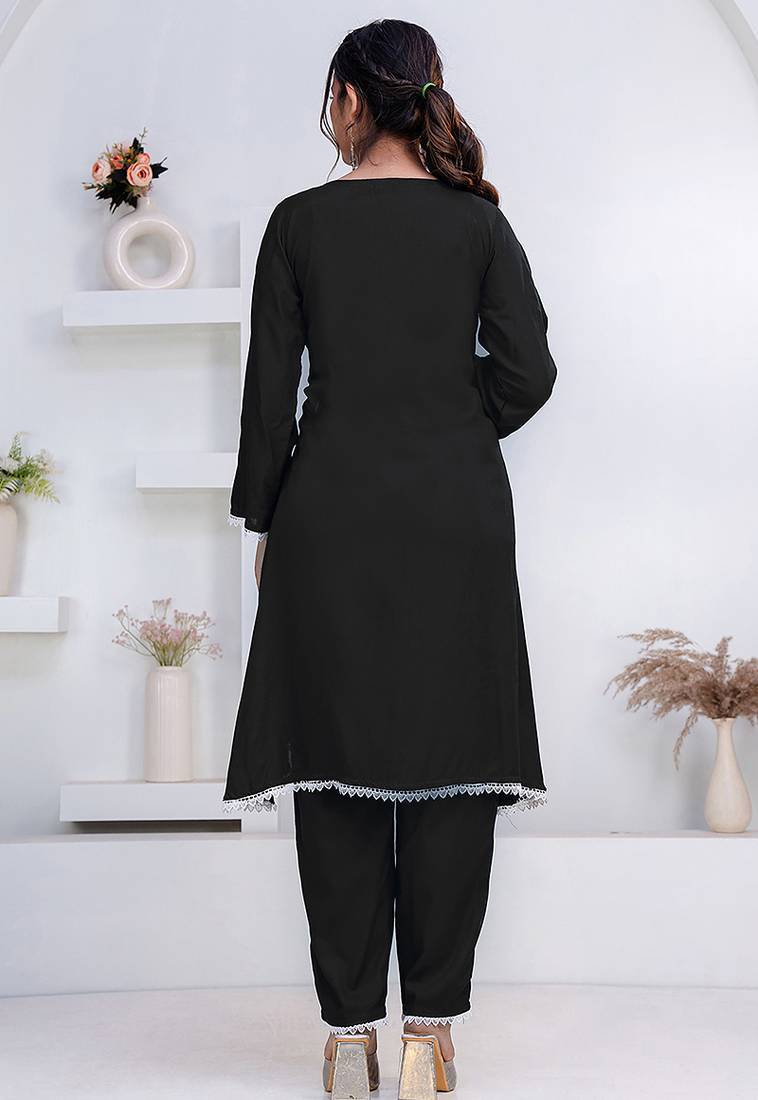 | Product Description | Women Black Rayon Lace Button Stiched Full Sleeve U Neck Party Wear A Line Kurta Set |