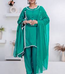 | Product Description | Women Rama Green Rayon Lace Button Stiched Full Sleeve U Neck Party Wear A Line Kurta Set |