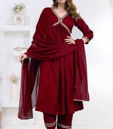 | Product Description | Women Maroon Rayon Lace Stiched 3/4 Sleeve V Neck Party Wear Flared Kurta Set |