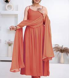 | Product Description | Women Peach Rayon Pintuck Stiched Sleevless Spaghetti Neck Party Wear Flared Kurta Set |