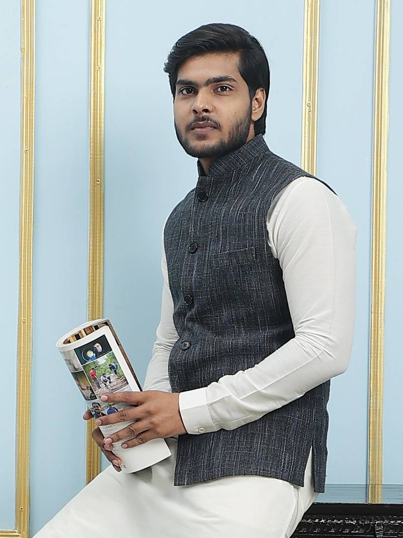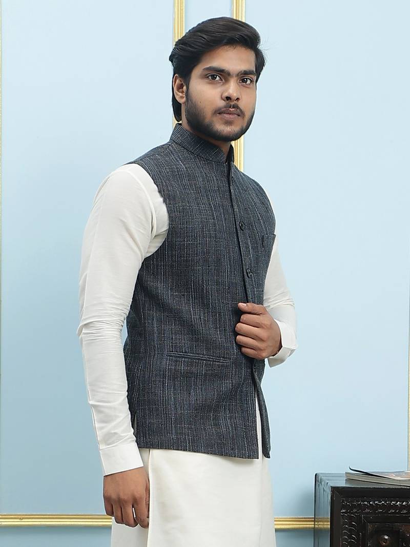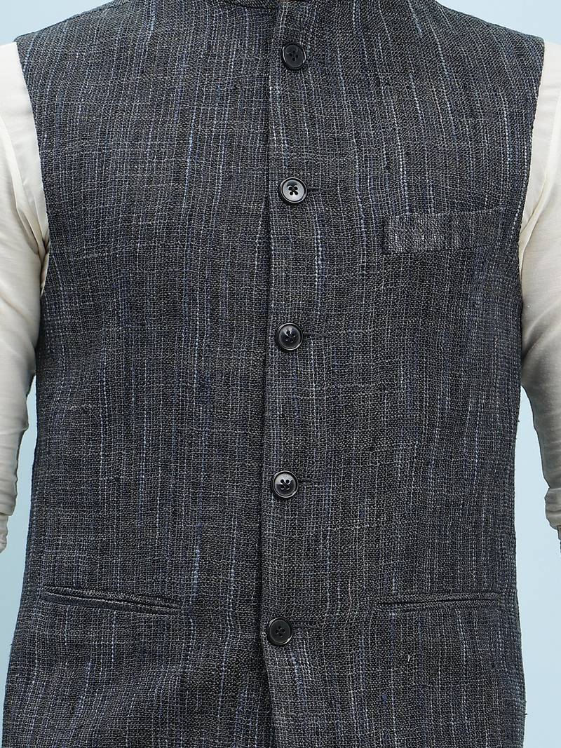 Product Name Men Black Color Solid Khadi Nehru Jacket