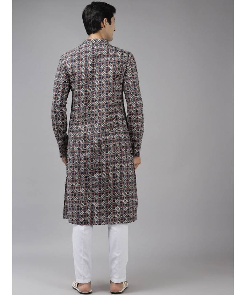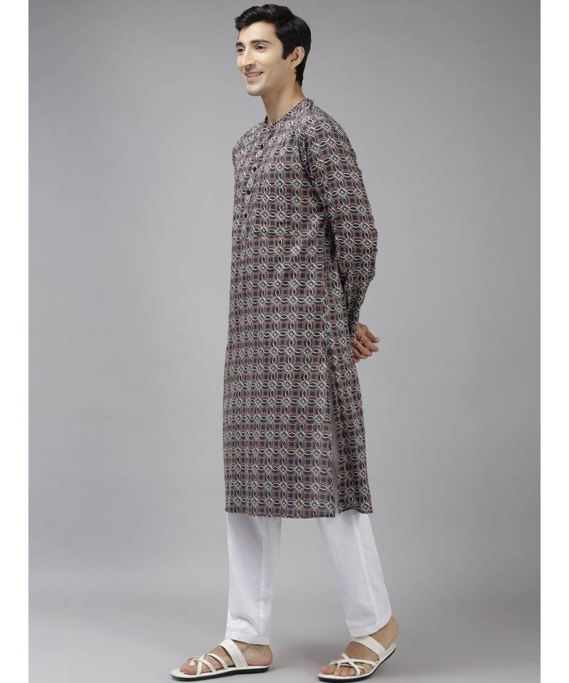 | Product Name | Men Blue And Beige Printed Thread Work Indigo Kurta With Pyjama | |