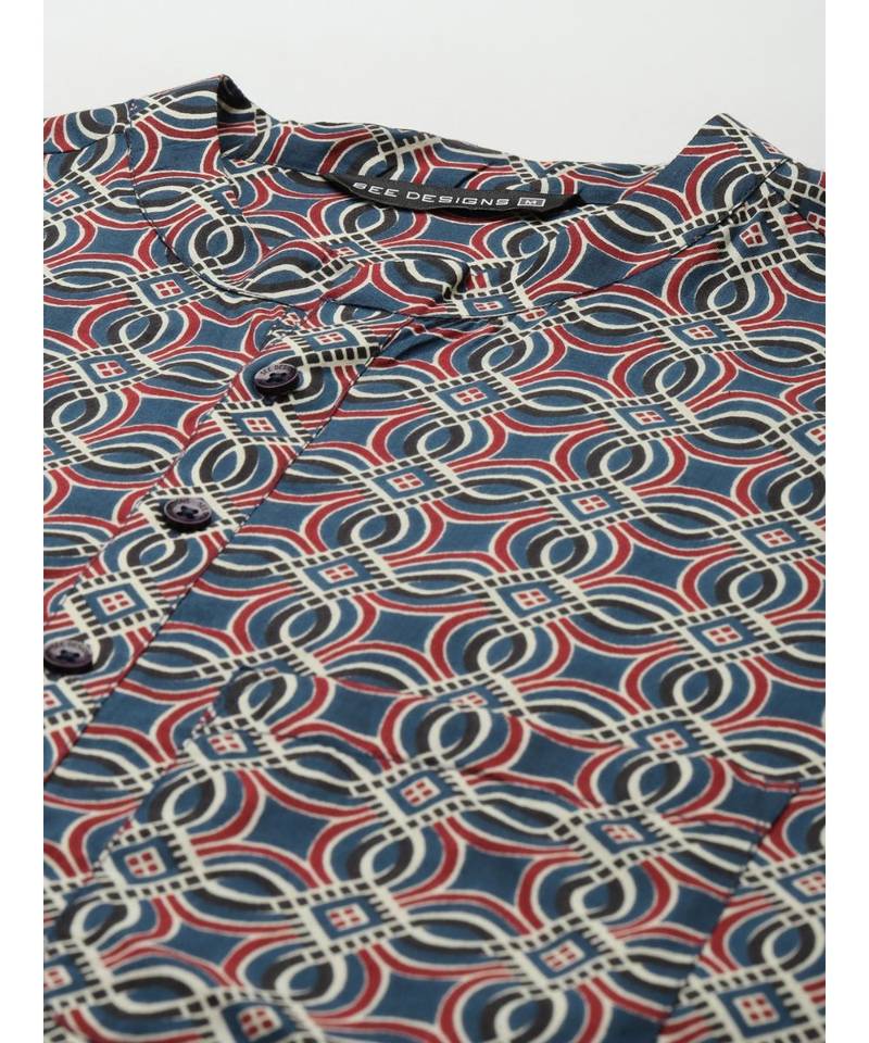 | Product Description | Blue And Beige Printed Straight Kurta, Has A Mandarin Collar, Button Closures, Long Sleeves, Straight Hem, And Side Slits |