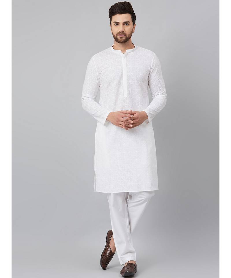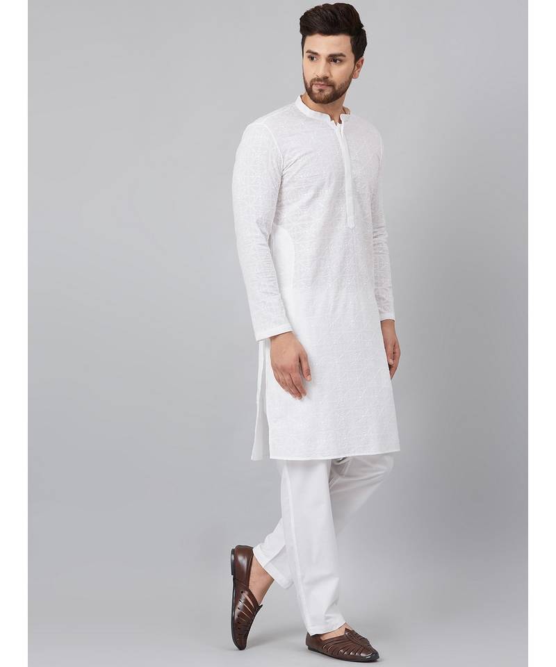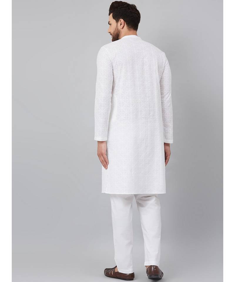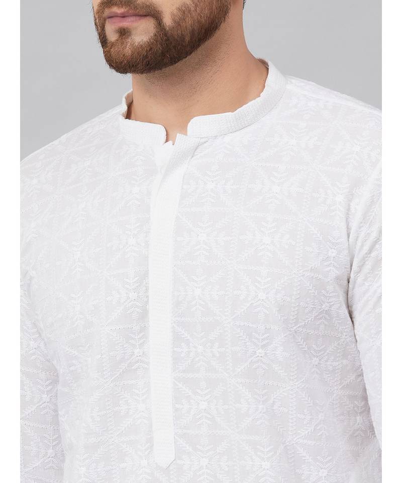 | Product Description | White Green Chikankari Embroidered Woven Design Straight Cotton Kurta |