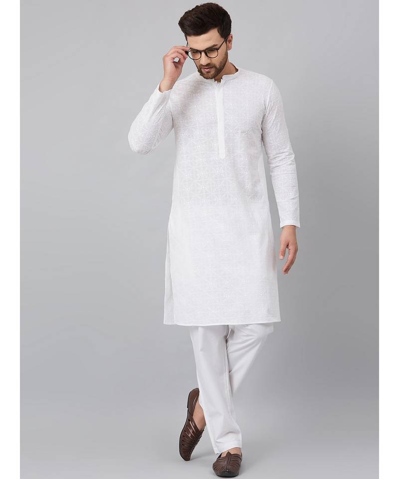| Product Name | White Green Chikankari Embroidered Woven Design Straight Cotton Kurta | |