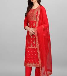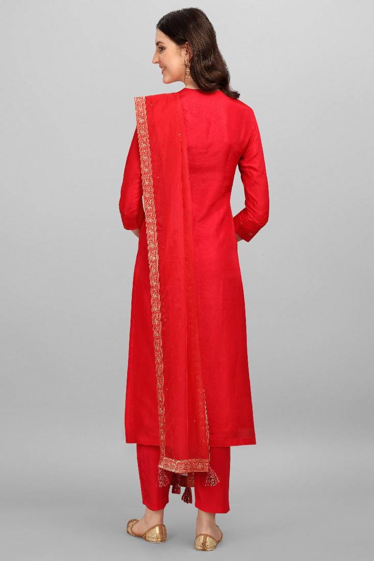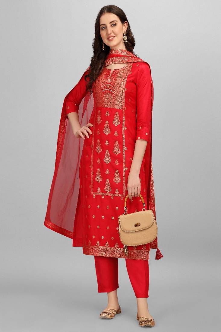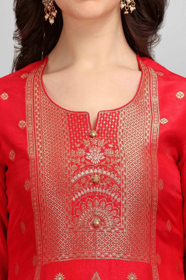 | Product Description | Red Viscose Panal Jacquard Top With Organza Dupatta And Dyed Palazzo |
