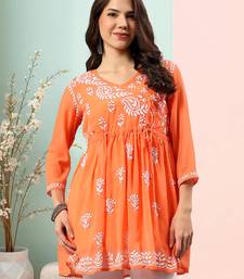 | Product Name | Seva Chikan Hand Embroidered Orange Georgette Lucknowi Chikan Top With Slip Scl9247 | |