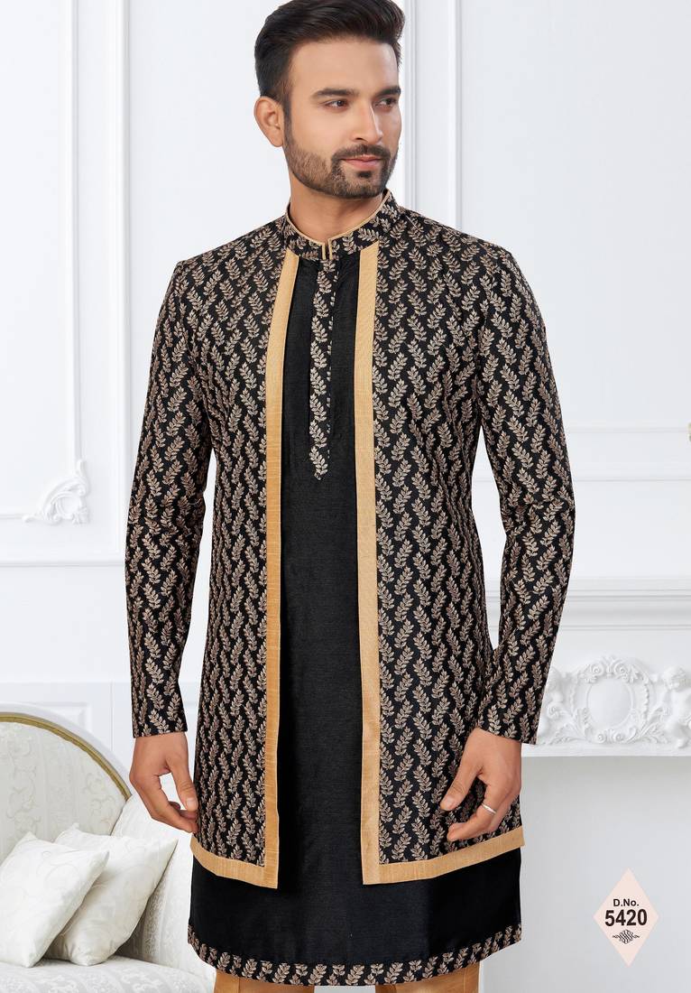 | Product Name | Black And Beige Imported Silk And Banarasi Silk Indowestern For Mens | |