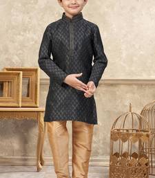 Black banarasi jacquard woven kurta pajama for boys