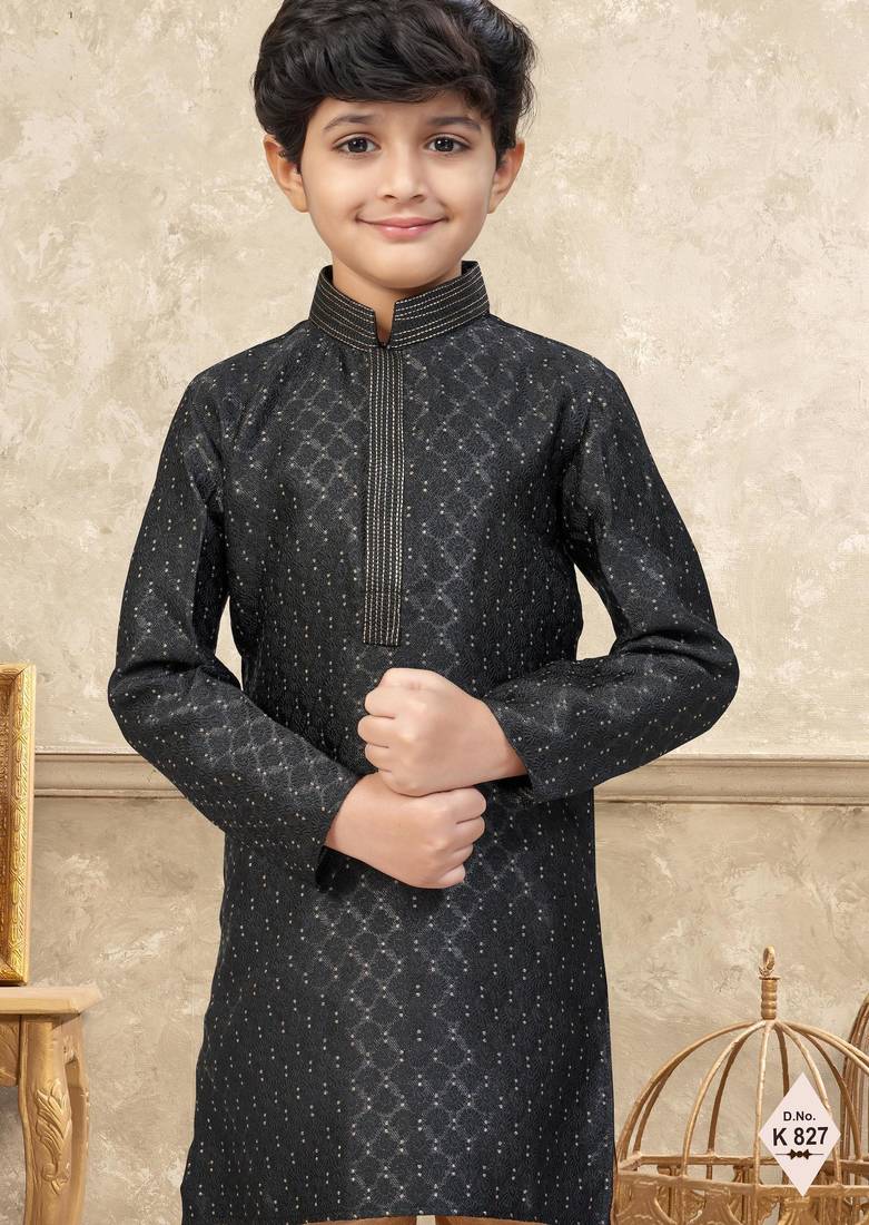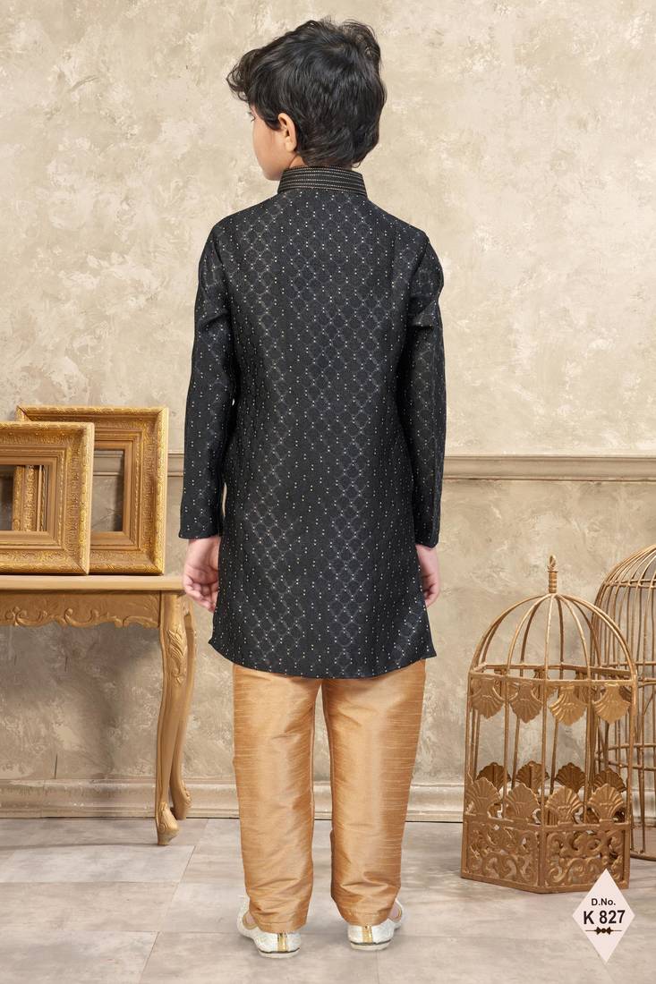 | Product Name | Black Banarasi Jacquard Woven Kurta Pajama For Boys | |