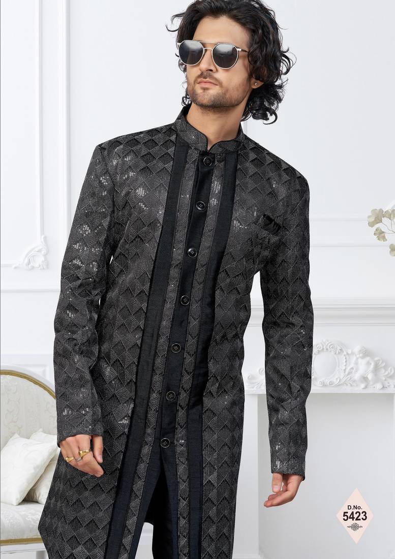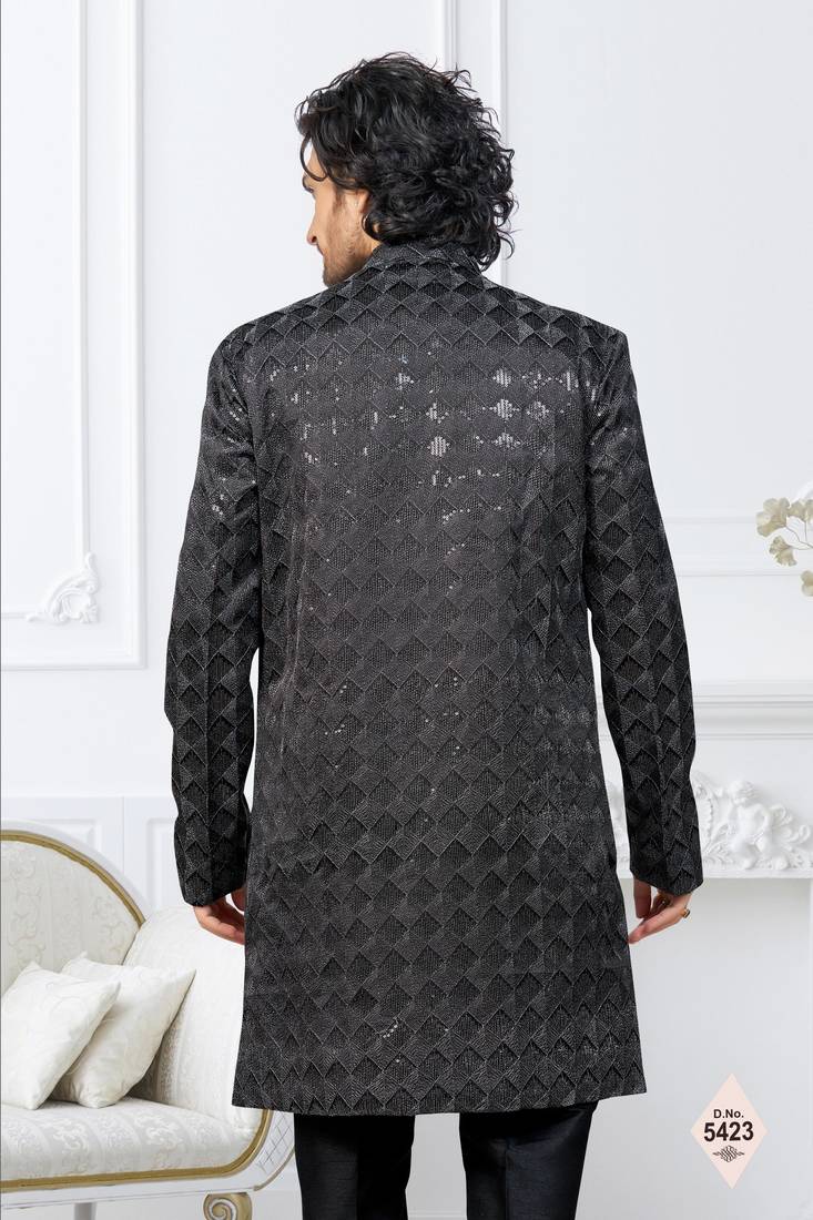 | Product Name | Black Zari Jackard And Banarasi Silk Indowestern For Mens | |