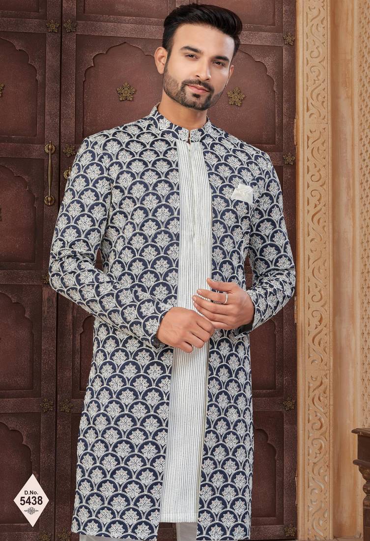 | Product Name | Blue And Off White Malai Silk And Imported Silk Indowestern For Mens | |