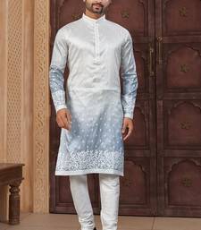 Blue & off white pewor silk kurta and pajama for mens