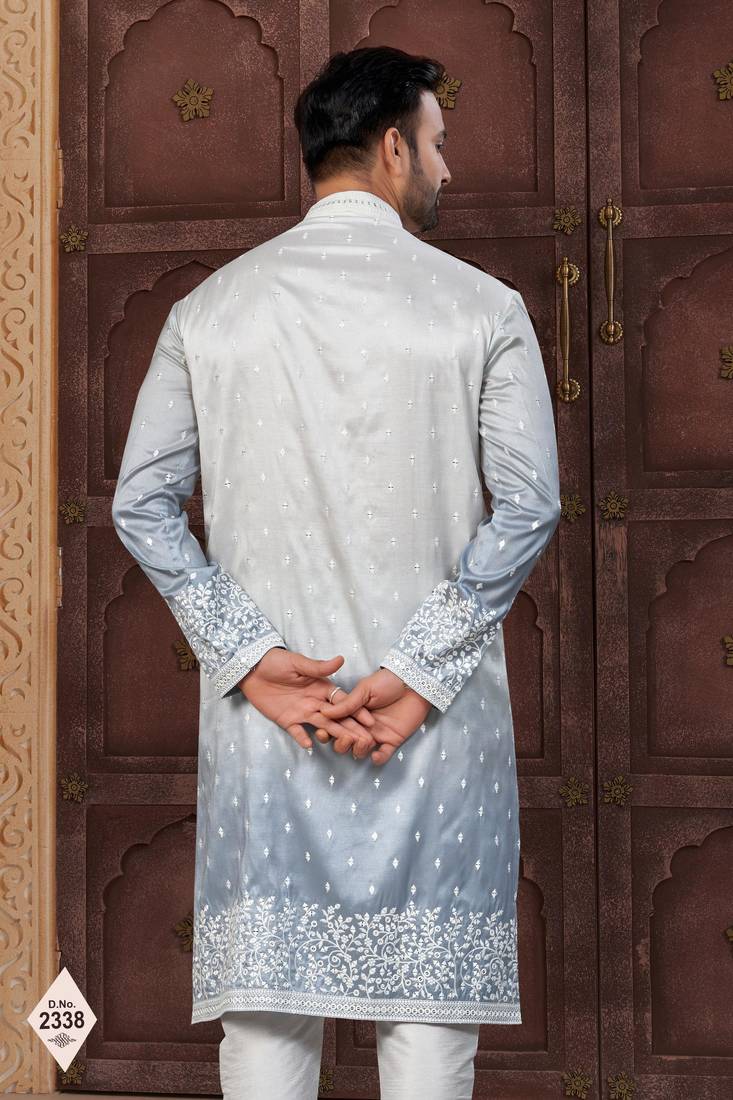 | Product Name | Blue & Off White Pewor Silk Kurta And Pajama For Mens | |