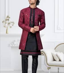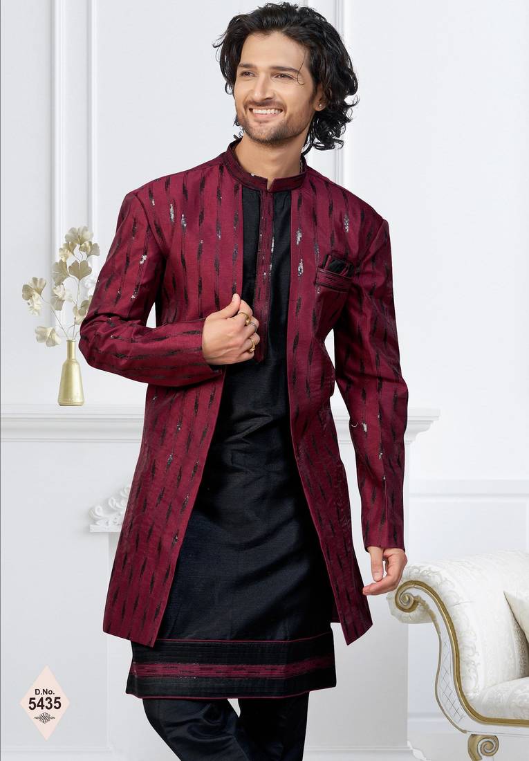 Maroon & black imported silk and banarasi silk indowestern for mens