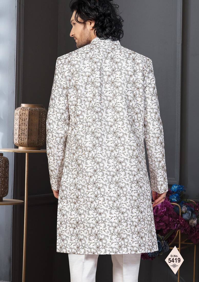 | Product Name | Off White Kora Shine Silk Indowestern For Mens | |