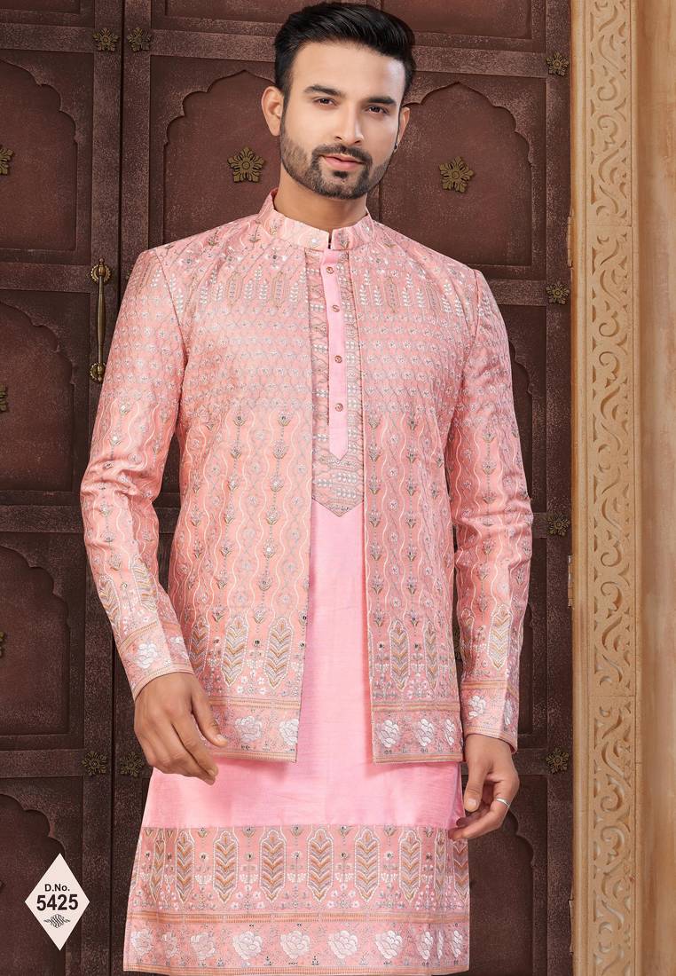 | Product Name | Pink Super Silk And Banarasi Silk Indowestern For Mens | |