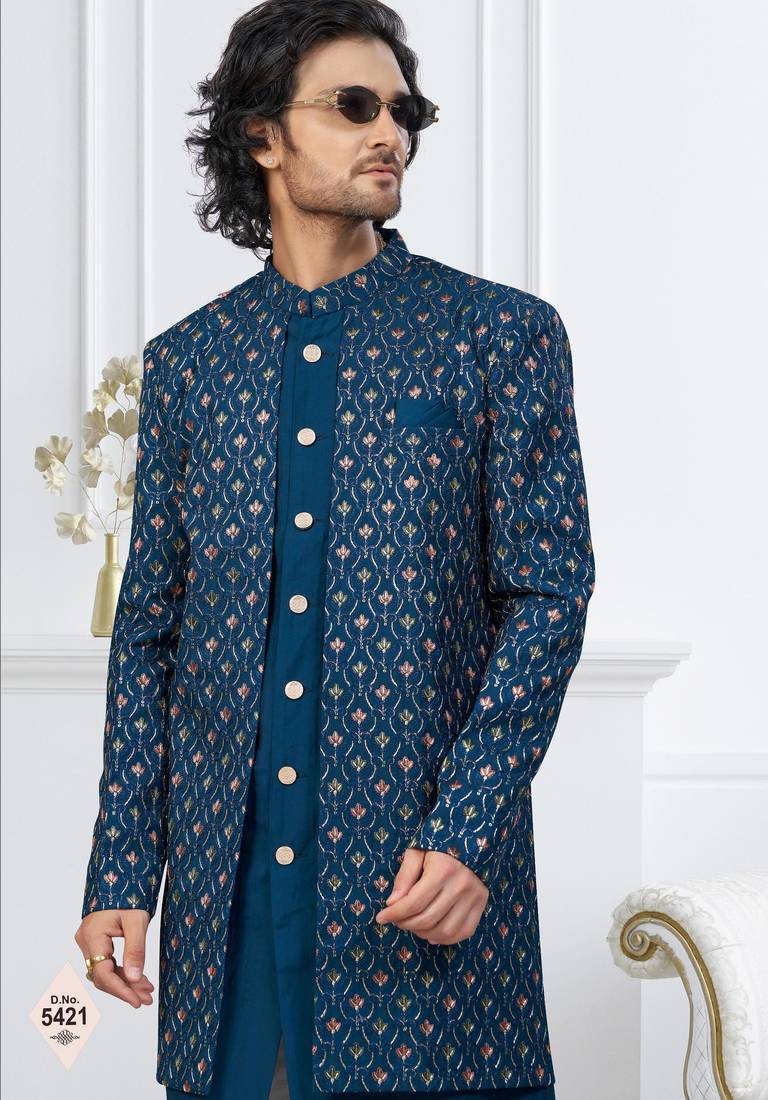 | Product Name | Teal Blue Imported Shoft Silk Indowestern For Mens | |