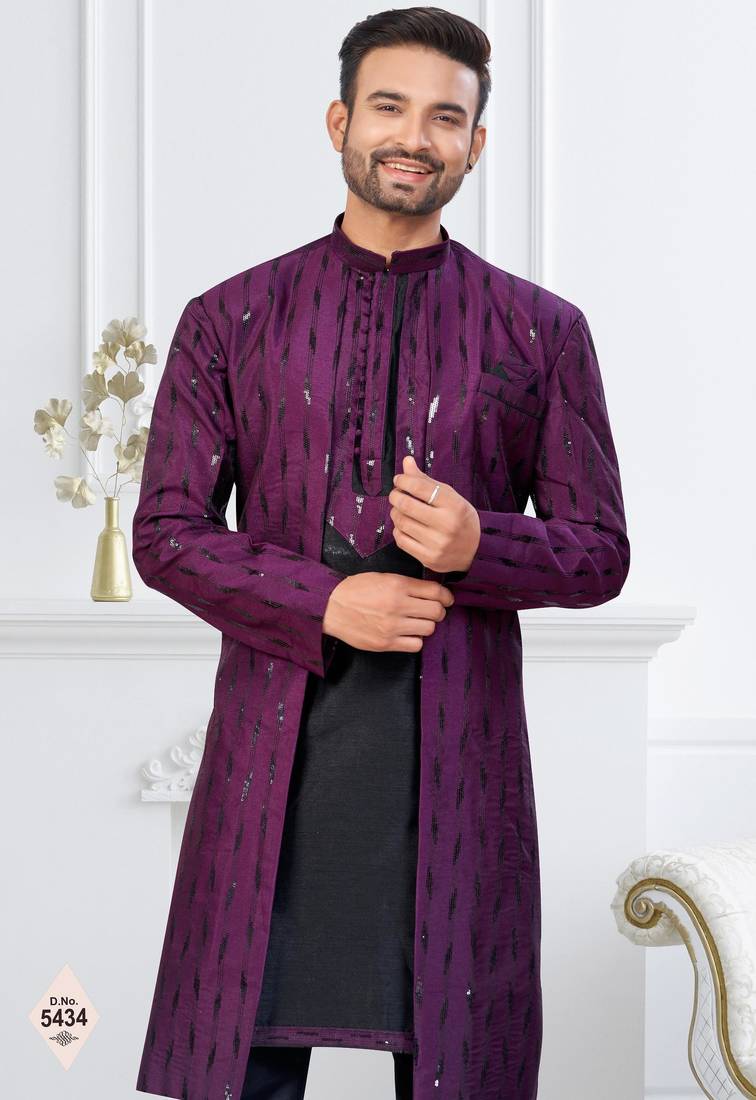 | Product Name | Wine & Black Imported Silk And Banarasi Silk Indowestern For Mens | |