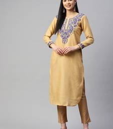 | Product Name | Beige Artsilk Kurti With Blue Chikankari Embroidery | |