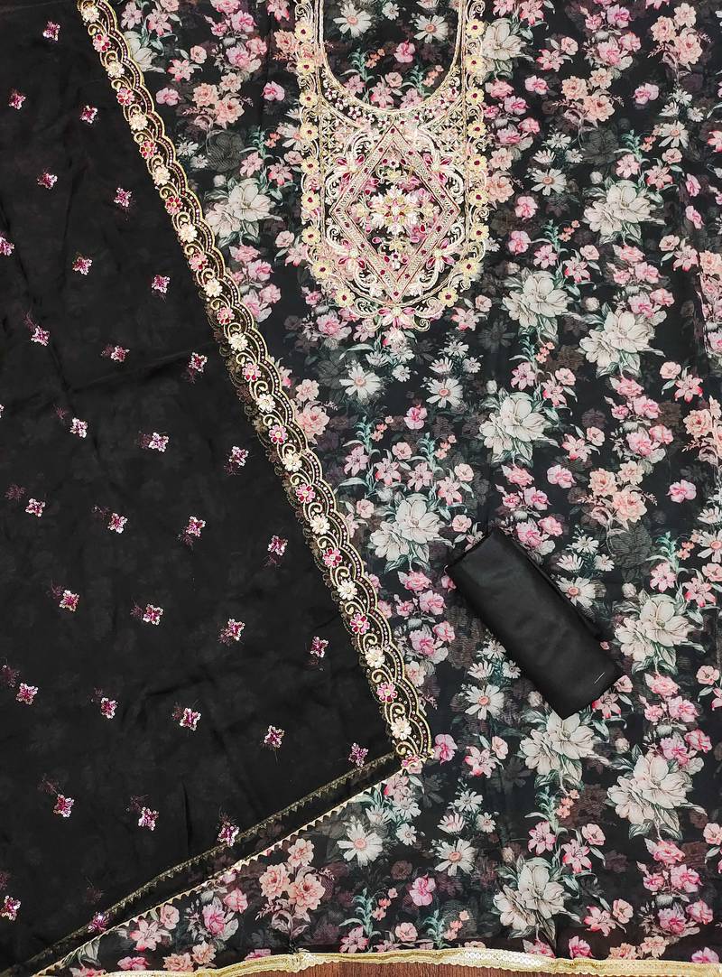 | Product Name | Black Color Hand Work Heavy Organza Straight Churidar Dress Material | |