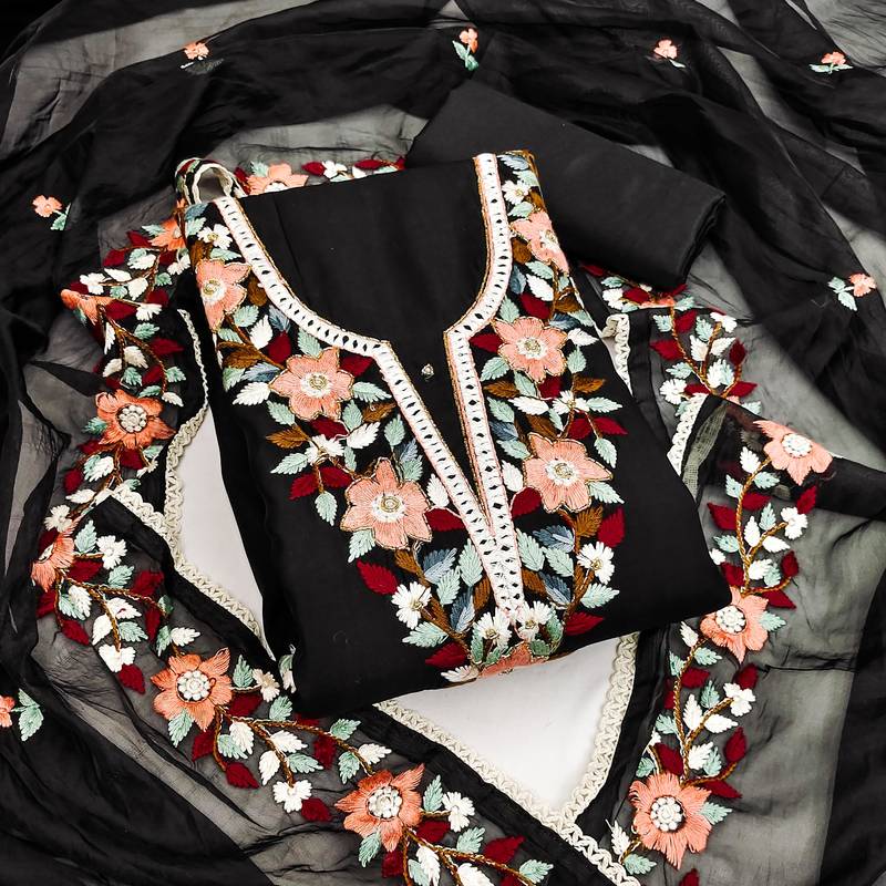 | Product Description | Stylish Heavy Thread Embroidery And Hand Work With Deisngner Thread Work Dupatta Straight Style 2.20 Mtr Unstitched Dress Material Top Of Black Colour Heavy Roman Silk Fabric Also Including 2.40 Mtr Chudidar Style Bottom Piece Material Of Black Colour Heavy Santoon Fabric With 2.20 Mtr Dupatta Of Black Colour Heavy Organza Fabric By Shadow & Saining Brand |