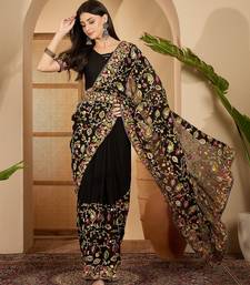 Black georgette heavy embroidered saree with belt kashmiri thread work festive designer saree