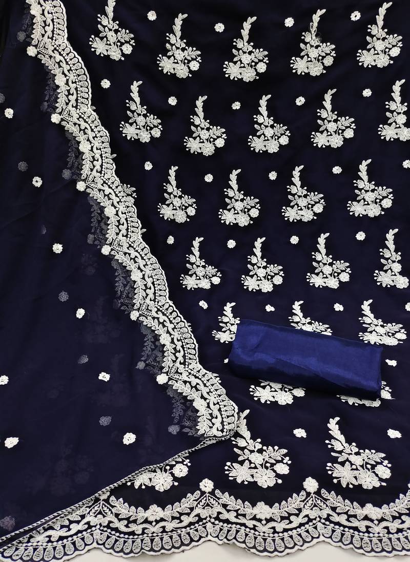 Blue georgette embroidered dress material unstitched