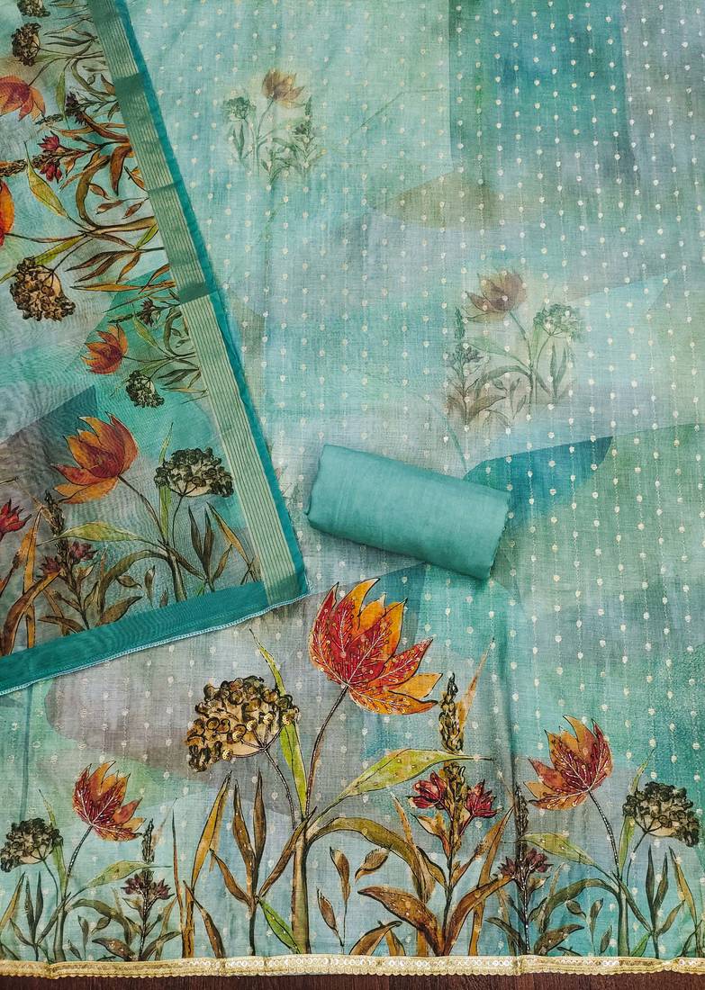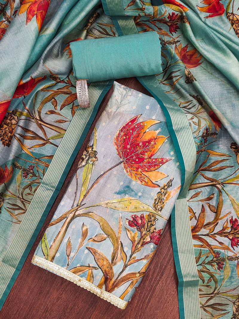 | Product Description | Stylish Heavy Hand Work With Designer Digital Print And Zari Weaving, Sequence Embroidery Work Along With Stylish Digital Printed Dupatta Work Straight Style 2.20 Mtr Unstitched Dress Material Top Of Blue Colour Modal Cotton Jacquard Fabric Also Including 2.20 Mtr Chudidar Style Bottom Piece Material Of Blue Colour Cotton Fabric With 2.25 Mtr Dupatta Of Multi Colour Jacquard Silk Fabric By Shadow & Saining Brand |