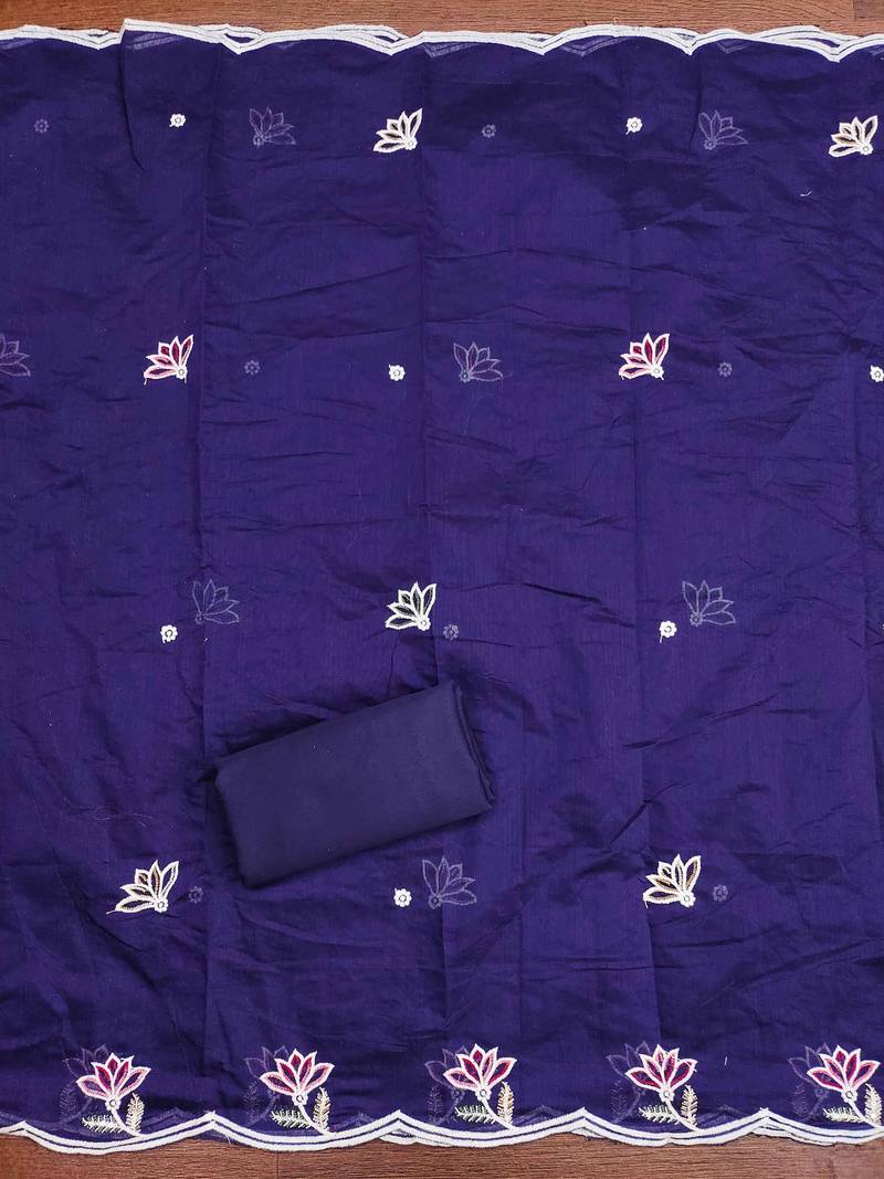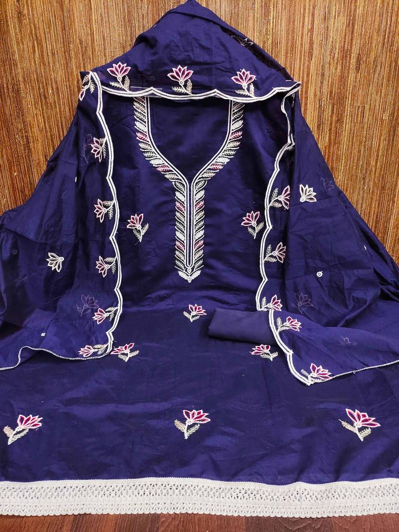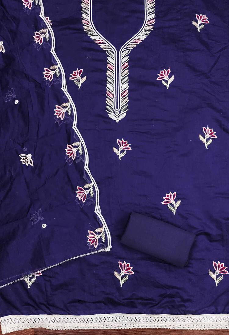 Luxury Heavy Thread Sequence Embroidery And Fancy Border With Embroidered Dupatta Straight Style 2.00 Mtr Unstitched Dress Material Top Of Blue Colour Chanderi Cotton Fabric With 2 Mtr Micro Crape As Lining Inner Fabric Also Including 3.60 Mtr Unstiched Bottom Material Of Blue Colour Micro Crape Fabric With 2.00 Mtr Dupatta Of Blue Colour Chanderi Cotton Fabric By Shadow & Saining Brand