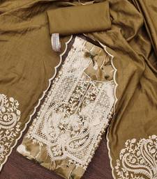 Brown printed cotton semi stitched churidar dress-materials