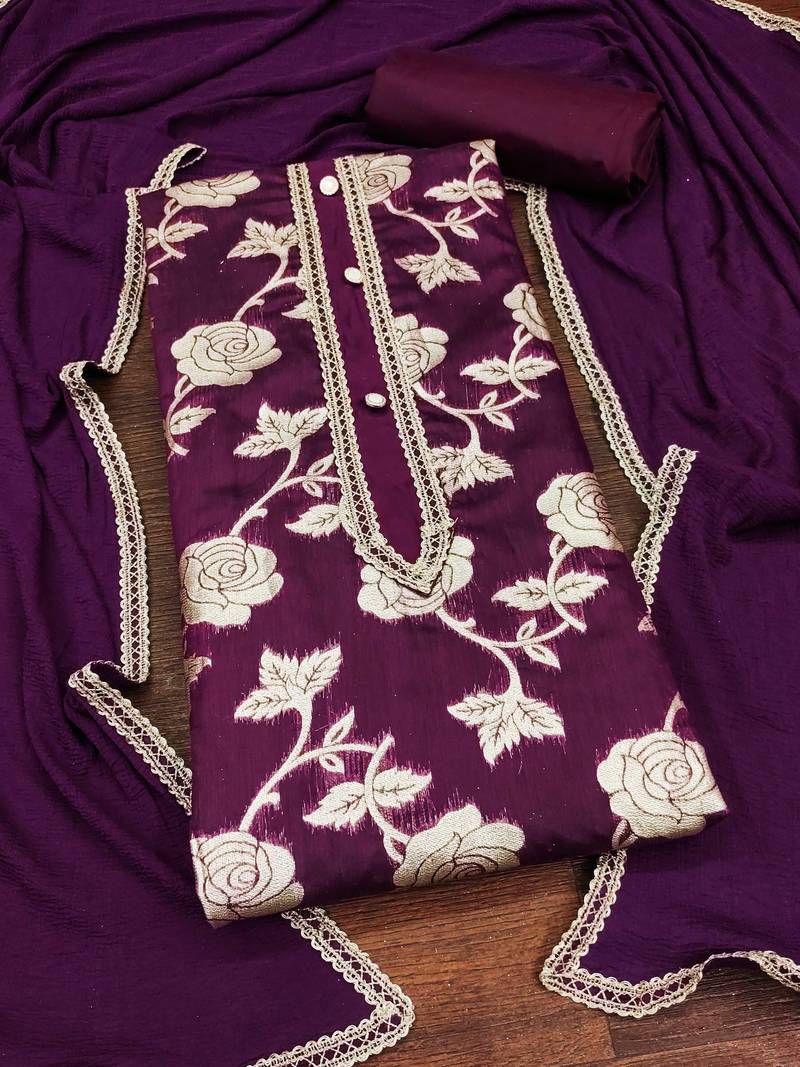 | Product Name | Burgundy Woven Jacquard Unstitched Churidar Dress Materials | |