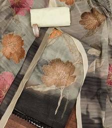 Cream color printed heavy organza straight churidar dress material semi stitched