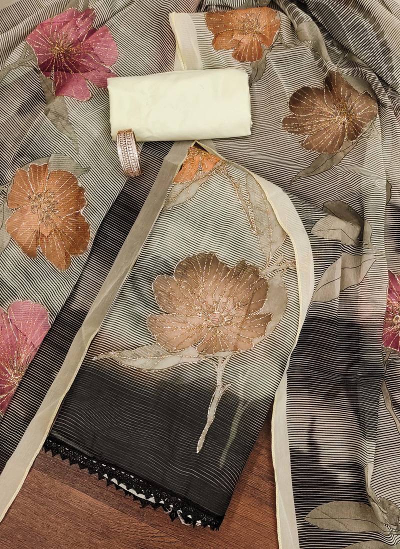 | Product Name | Cream Color Printed Heavy Organza Straight Churidar Dress Material | |