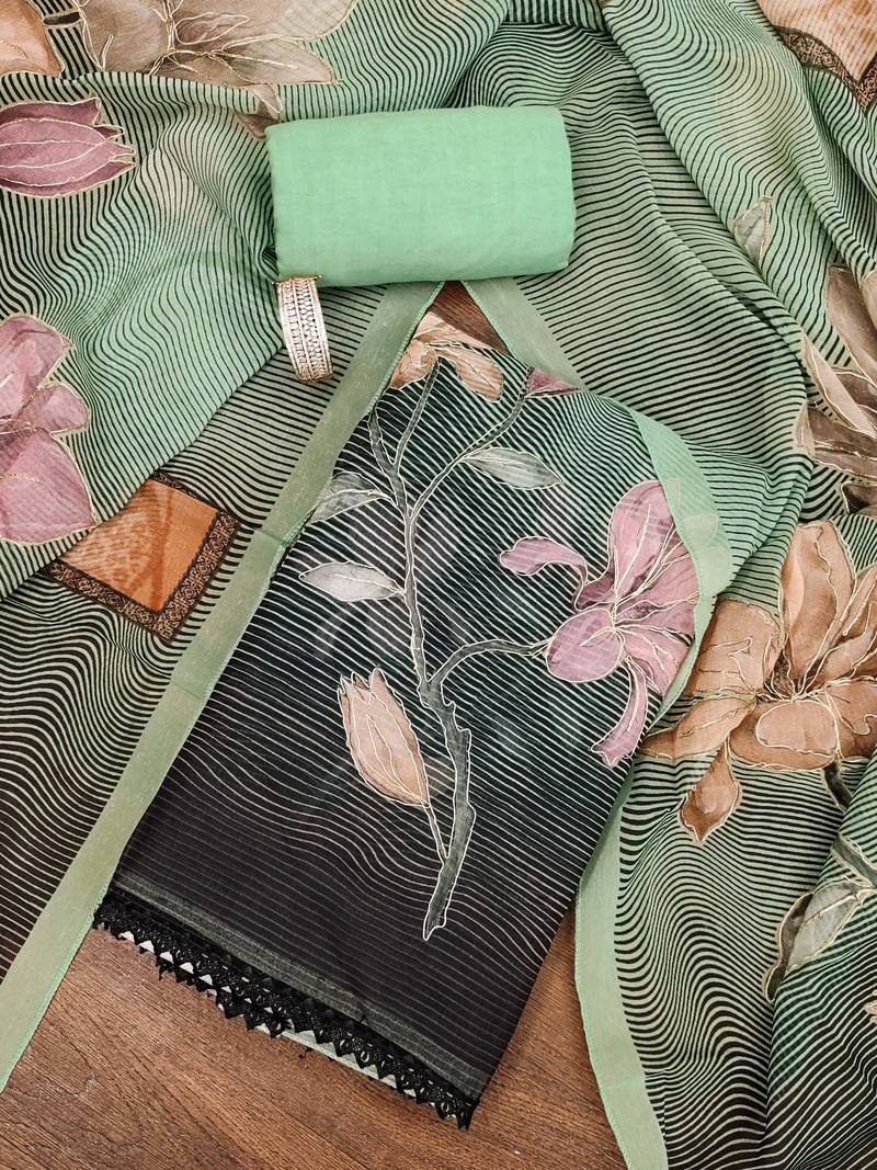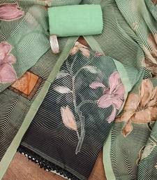 Green color printed heavy organza straight churidar dress material semi stitched