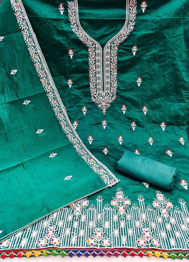 | Product Name | Green Embroidered Cotton Semi Stitched Churidar Dress Materials | |