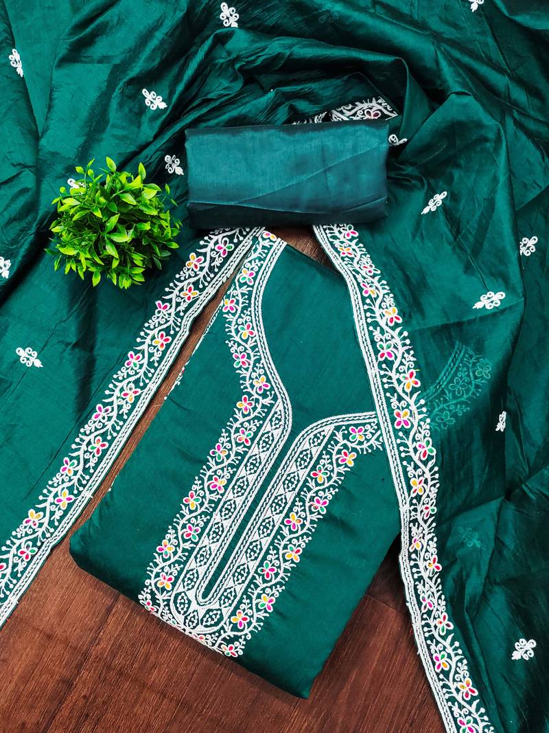 | Product Description | Preety Designer Multi Thread Embrodiered Work Along With Stylish Embrodiered Dupatta Work Straight Style 1.80 Mtr Unstitched Dress Material Top Of Green Colour Chanderi Cotton Fabric With 2 Mtr Santoon As Lining Inner Fabric Also Including 3.60 Mtr Unstiched Bottom Material Of Green Colour Santoon Fabric With 2.10 Mtr Dupatta Of Green Colour Chanderi Cotton Fabric By Shadow & Saining Brand |