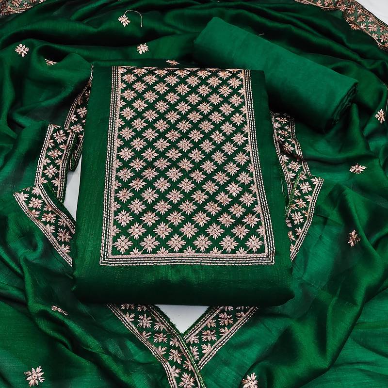 | Product Name | Green Silk Blend Embroidered Dress Material | |