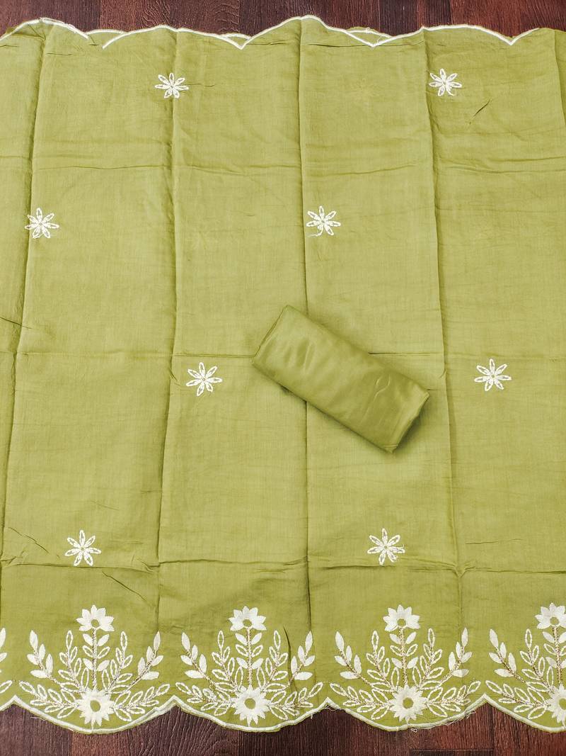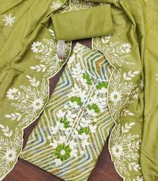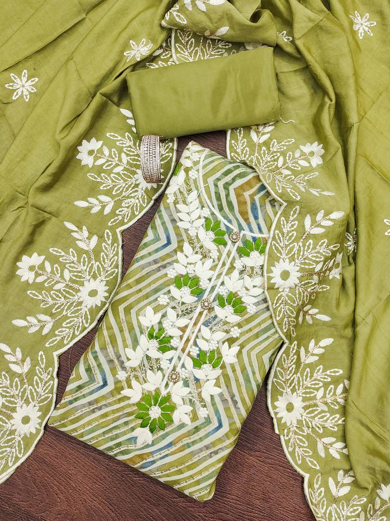 | Product Description | Stylish Foil Printed And Designer Neck Thread Embroidery Work Along Zari Work With Embroidered Dupatta Work Straight Style 2.30 Mtr Unstitched Dress Material Top Of Green Colour Pure Modal Cotton Fabric Also Including 2.50 Mtr Chudidar Style Bottom Piece Material Of Green Colour Heavy Santoon Fabric With 2.30 Mtr Dupatta Of Green Colour Heavy Chanderi Cotton Fabric By Shadow & Saining Brand |