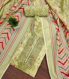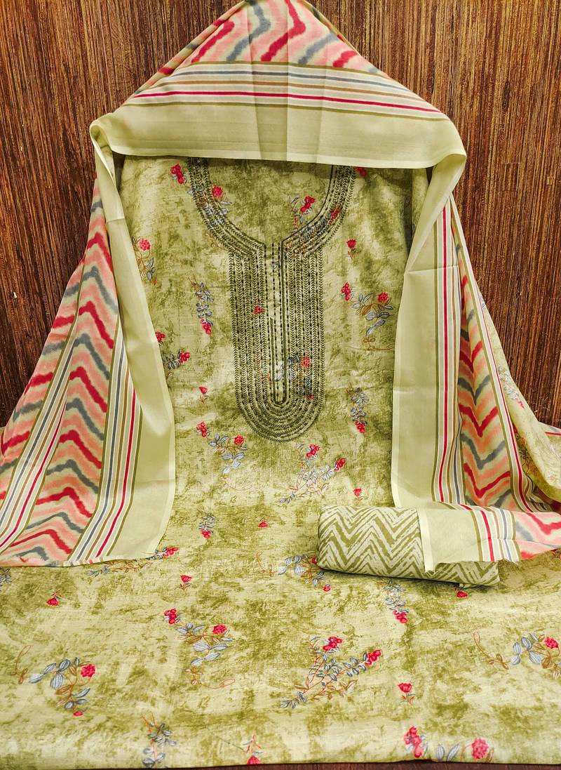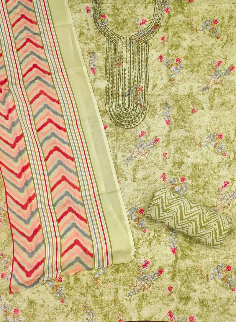 | Product Description | Exclusive Designer Print And Fancy Gala Work With Stylish Dupatta Straight Style 2.00 Mtr Unstitched Dress Material Top Of Green Colour Cotton Fabric Also Including 2.00 Mtr Chudidar Style Bottom Piece Material Of Green Colour Cotton Fabric With 2.00 Mtr Dupatta Of Multi Colour Cotton Fabric By Shadow & Saining Brand |