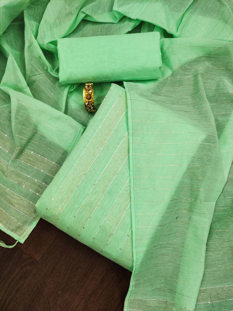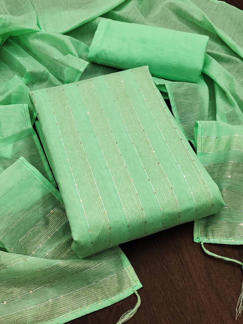 | Product Name | Green Sequins Chanderi Unstitched Churidar Dress Materials | |