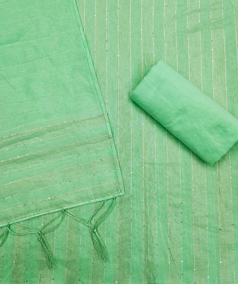 Green sequins chanderi unstitched churidar dress-materials