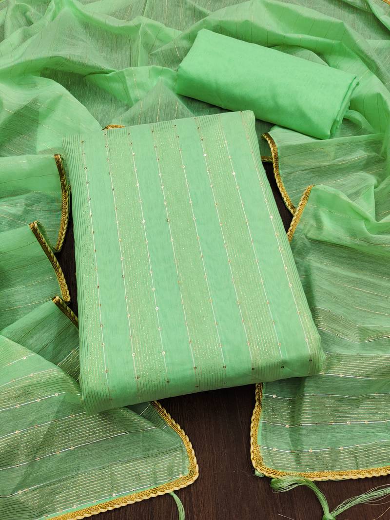 | Product Name | Green Sequins Chanderi Unstitched Churidar Dress Materials | |