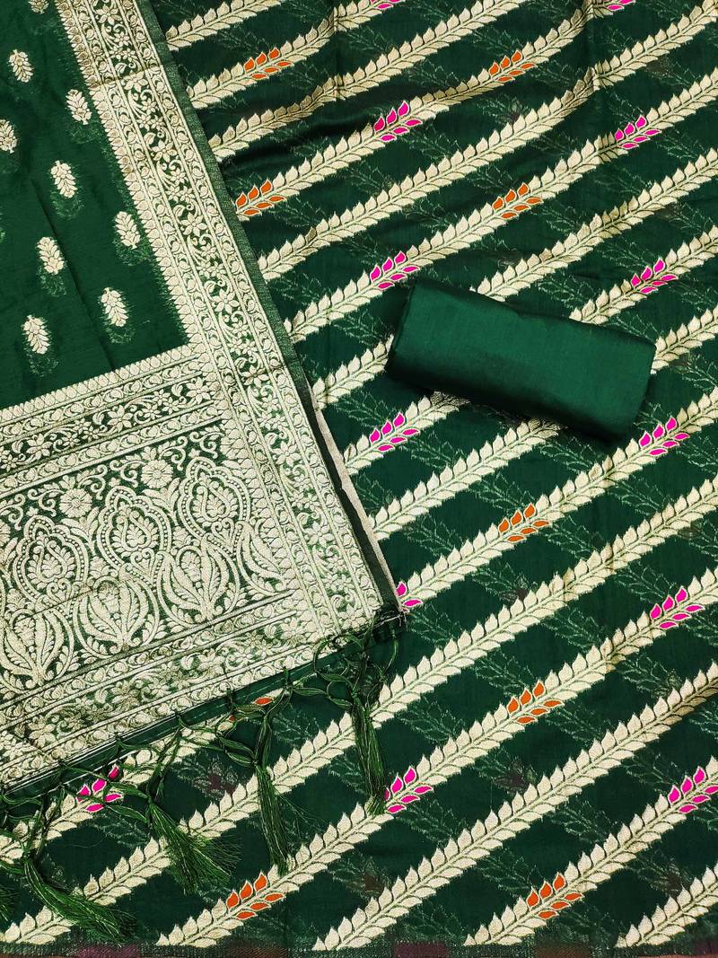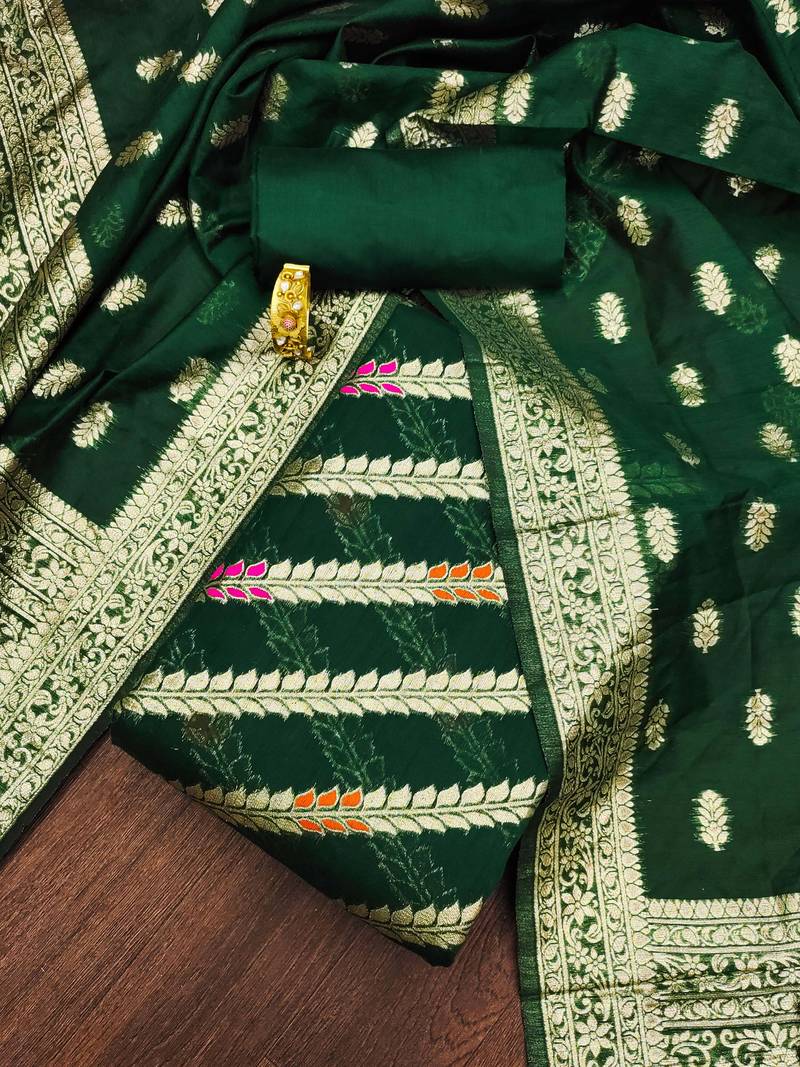 Green woven cotton unstitched churidar dress-materials