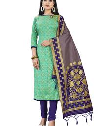 Green woven silk blend unstitched churidar dress-materials