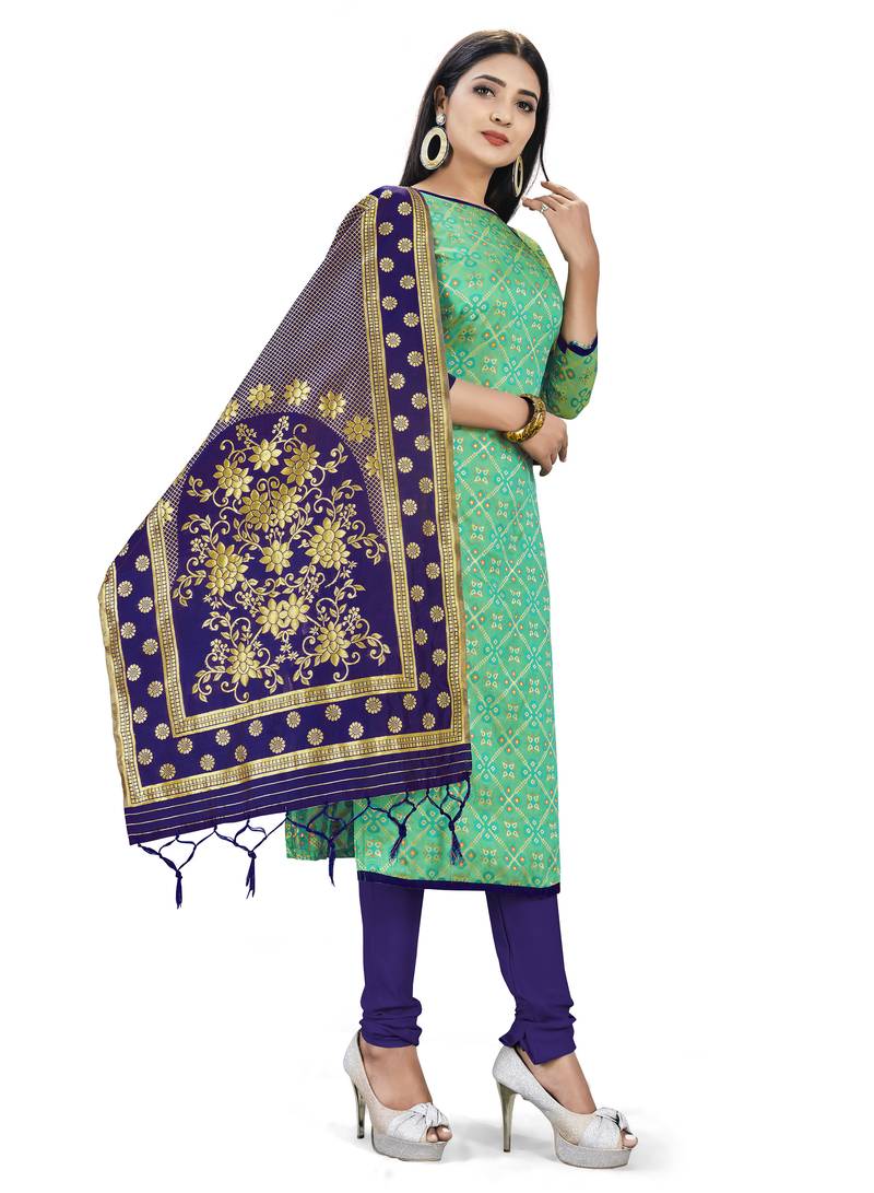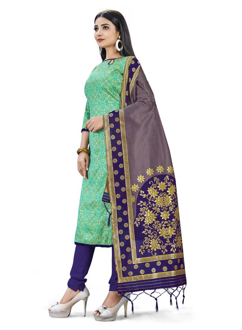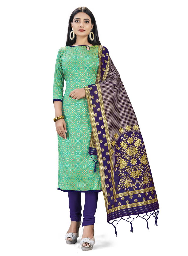| Product Name | Green Woven Silk Blend Unstitched Churidar Dress Materials | |
