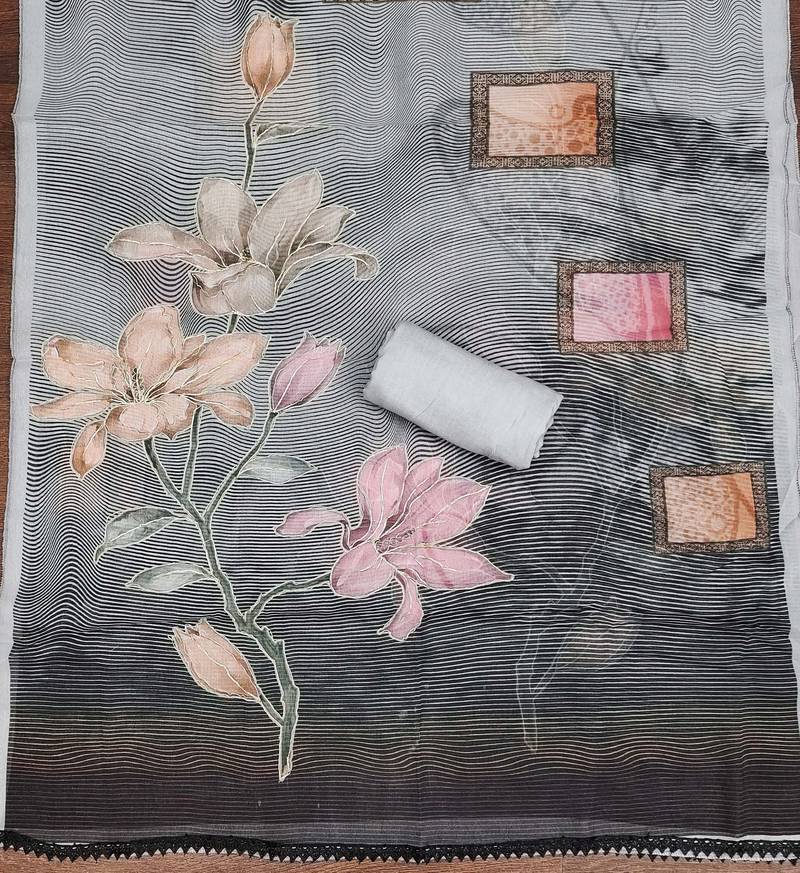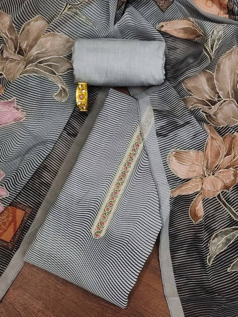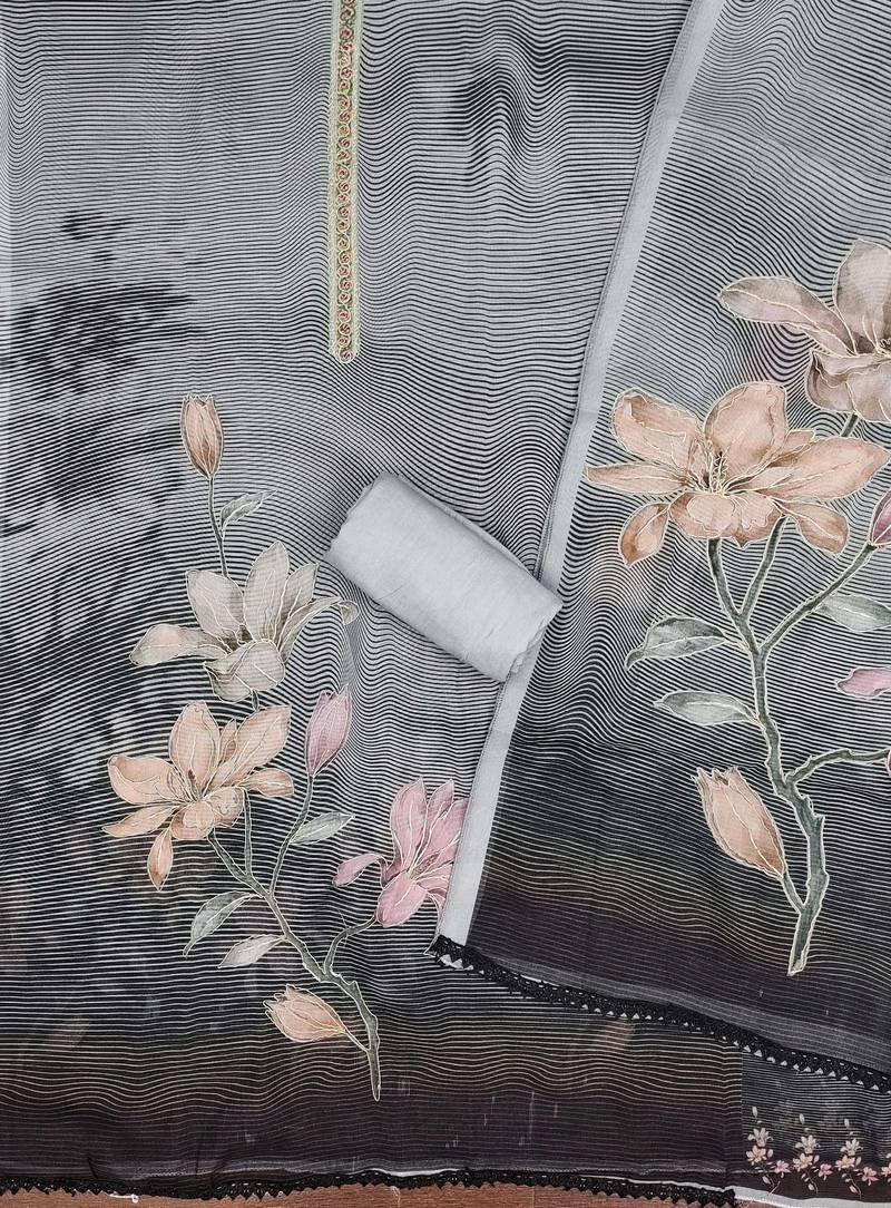 | Product Name | Grey Printed Organza Semi Stitched Churidar Dress Materials | |